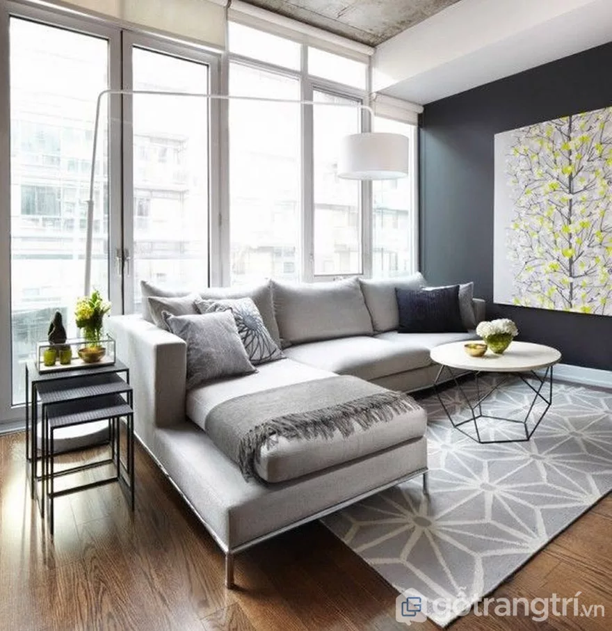 Với phòng khách nhỏ hơn 30m2, bạn có thể chỉ sử dụng một chiếc sofa dài kết hợp ghế đơn và bàn trà nhỏ là đã lên được ý tưởng thiết kế tuyệt vời.