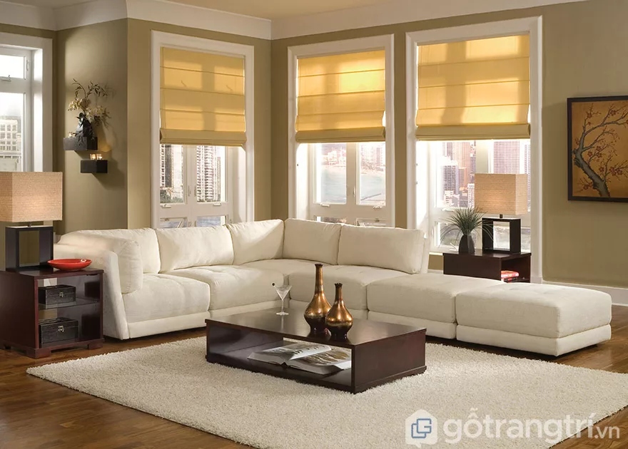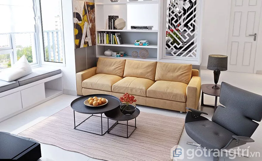 Với những ai yêu thích không gian nhiều ánh sáng, bạn nên xem xét và tham khảo về mẫu sofa tone màu sáng trên đấy. Thiế kế ghế liền với bàn cỡ nhỏ sẽ giúp bạn tiết kiệm diện tích đáng kể, thêm phần không gian trung tâm cho cra phòng.